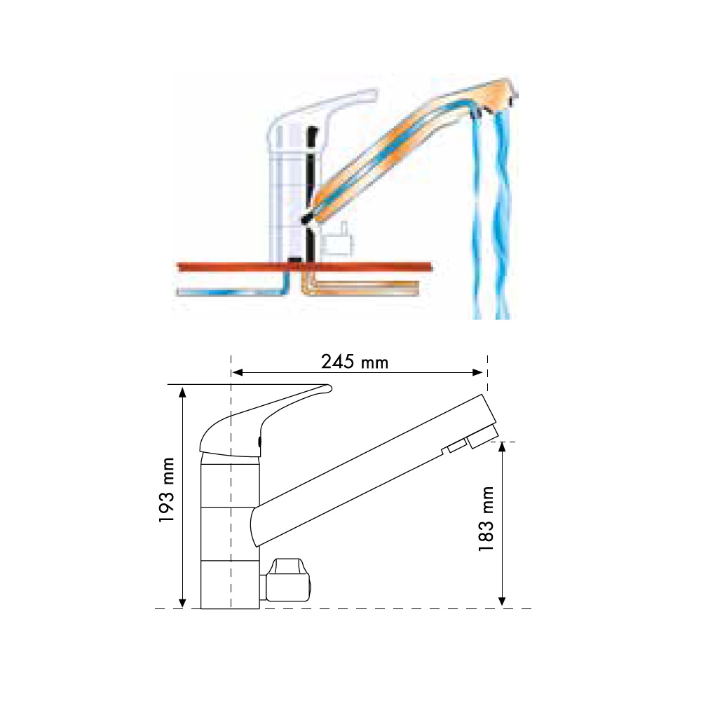 Argo Miscelatore 2 vie per acqua filtrata Lavello serie Vercelli bocca Alta colore cromo 2665/01E