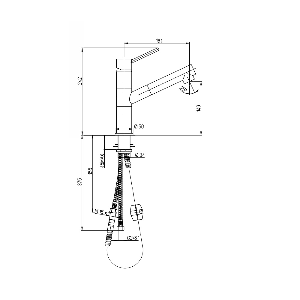 Argo Miscelatore con doccetta estraibile Lavello serie Verona doccia monogetto colore cromo 2780/01