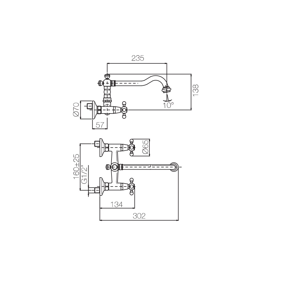 Porta&Bini Rubinetto 2 leve Lavello serie Old Fashion a muro canna alta colore rame 62551RA