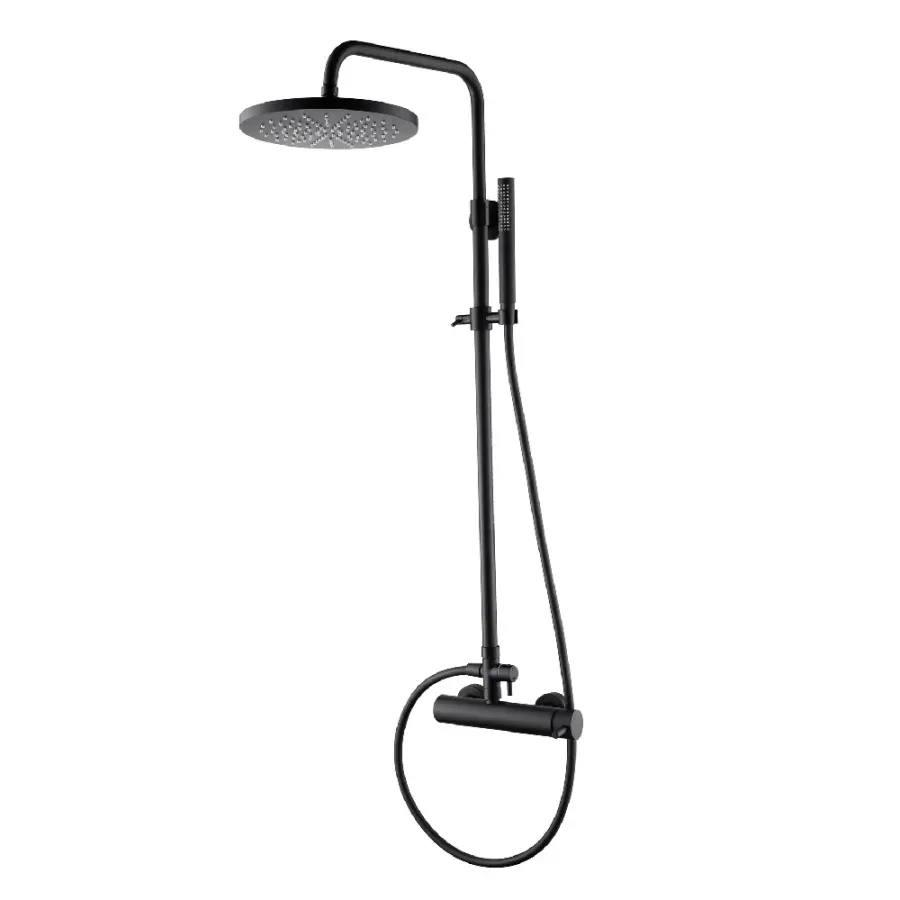 Damast Colonna Doccia serie Marlena asta telescopica e girevole + soffione + doccetta + deviatore + miscelatore nero opaco 15429