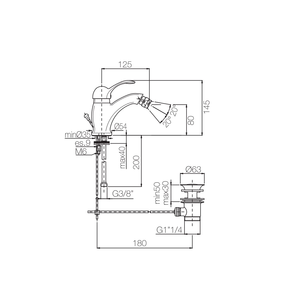 Porta&Bini Miscelatore monoleva Bidet serie Duna con scarico automatico 1"1/4 colore cromo 70120CR