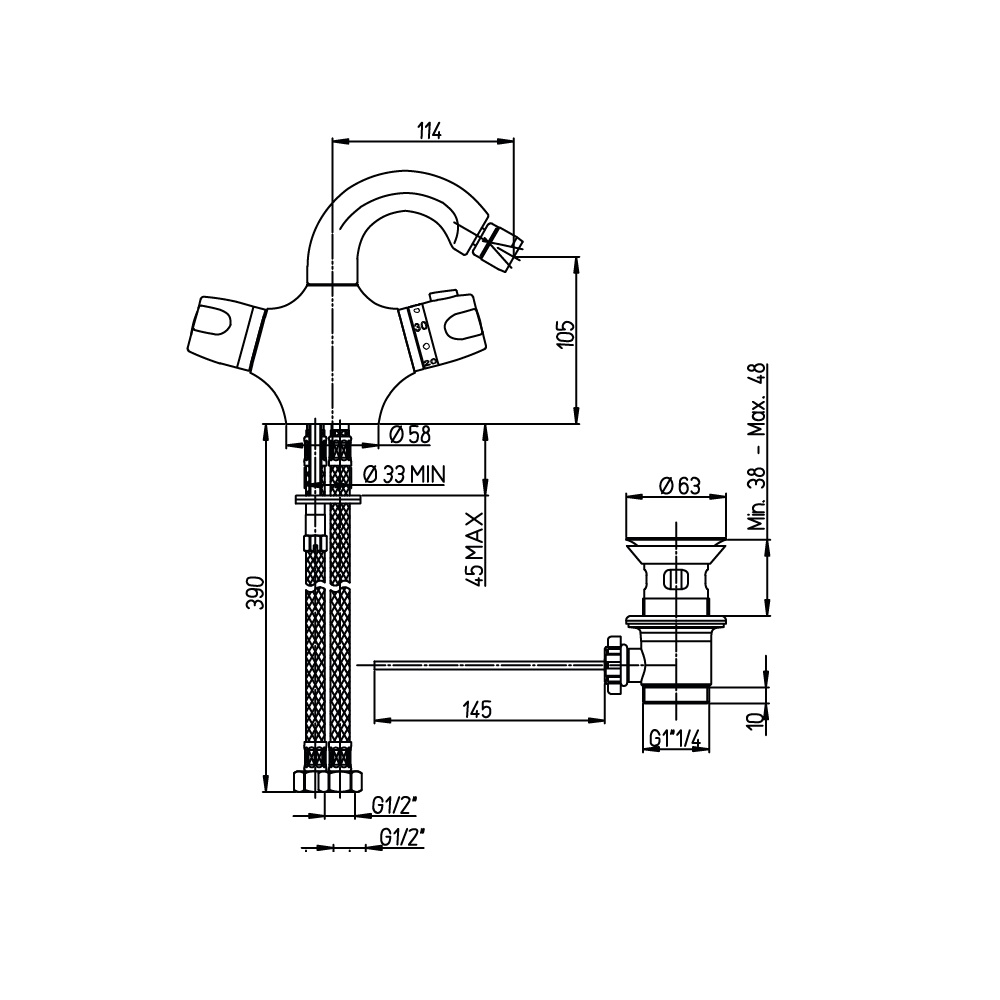 - scarico 11/4 a pressione