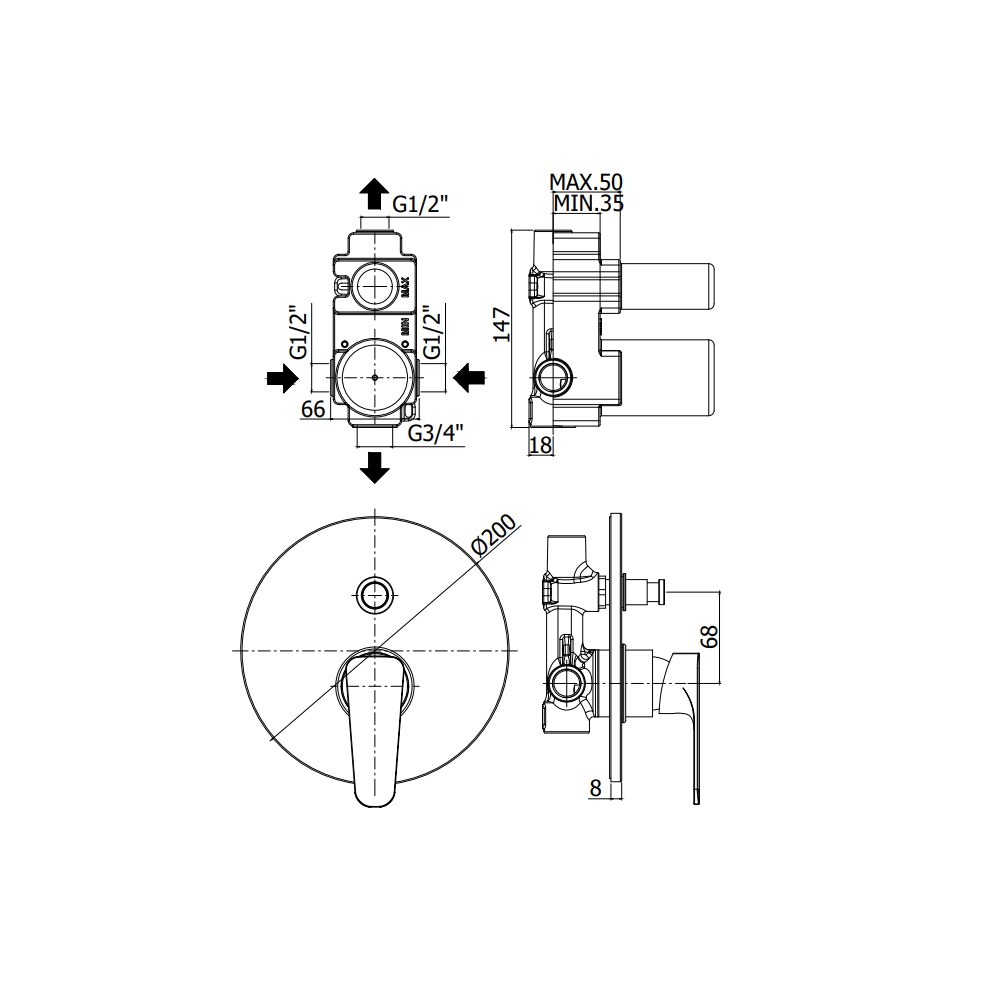 - attacchi calda/fredda e superiore 1/2G - attacco inferiore 3/4G