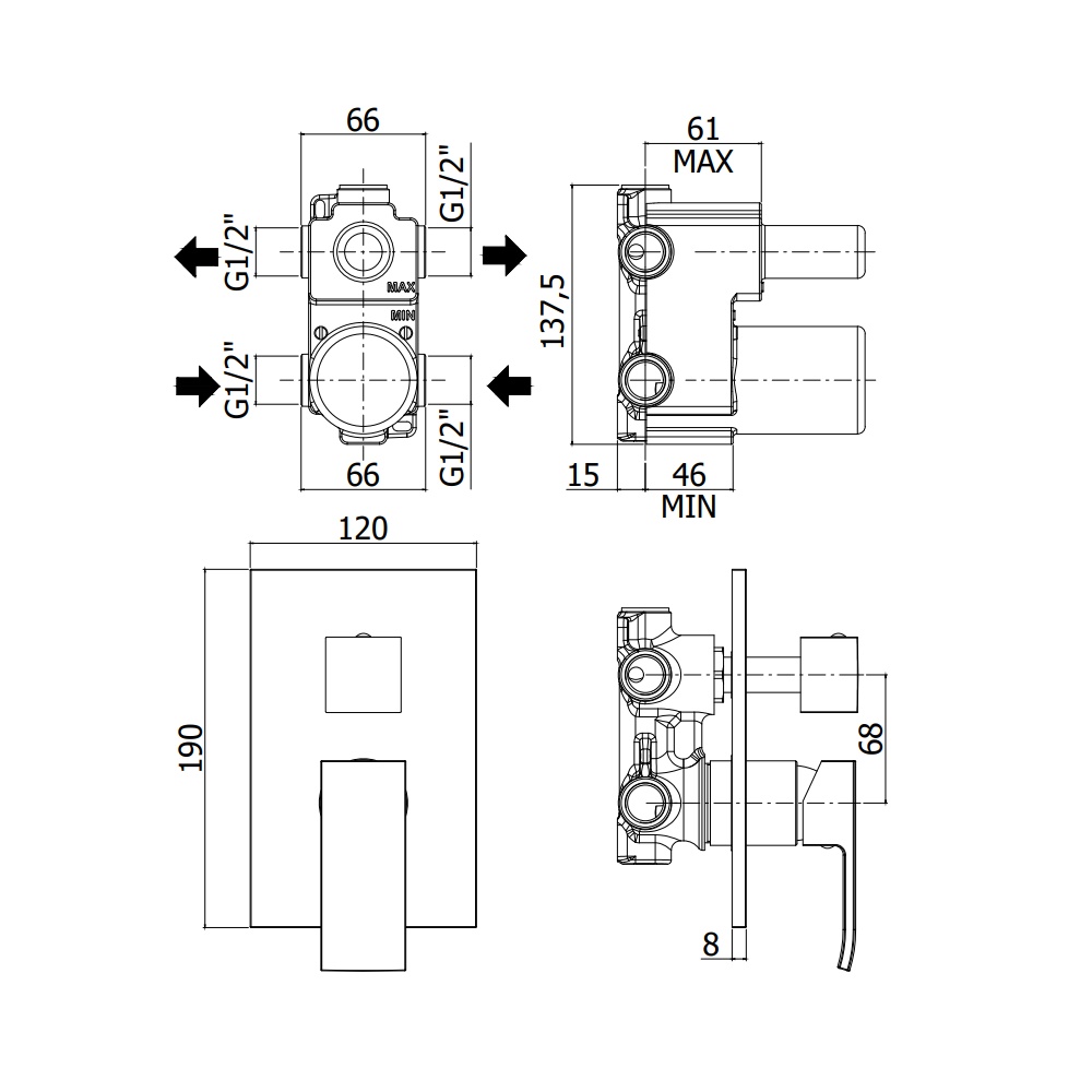 - con cartuccia deviatore (2 uscite + 1 posizione combinata)
