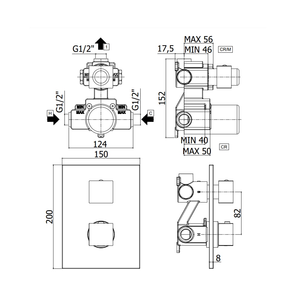 Codice produttore Paffoni: LEQ513CR- piastra 150x200 mm