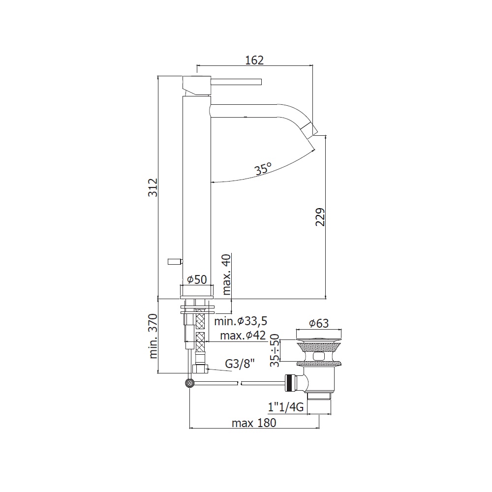 - altezza 312 mm