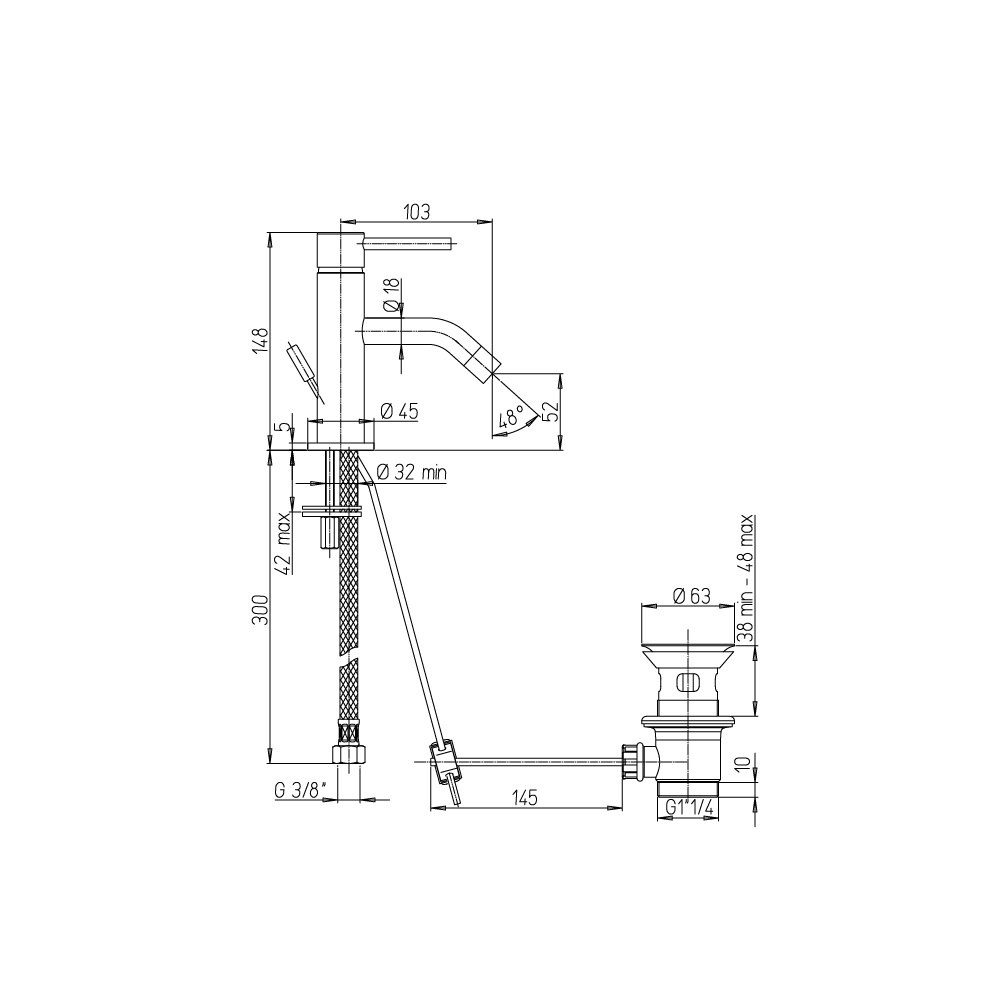 Argo Miscelatore monoleva Lavabo serie Cilindra con attacco piletta 1" 1/4 colore bianco opaco CL C100/03E