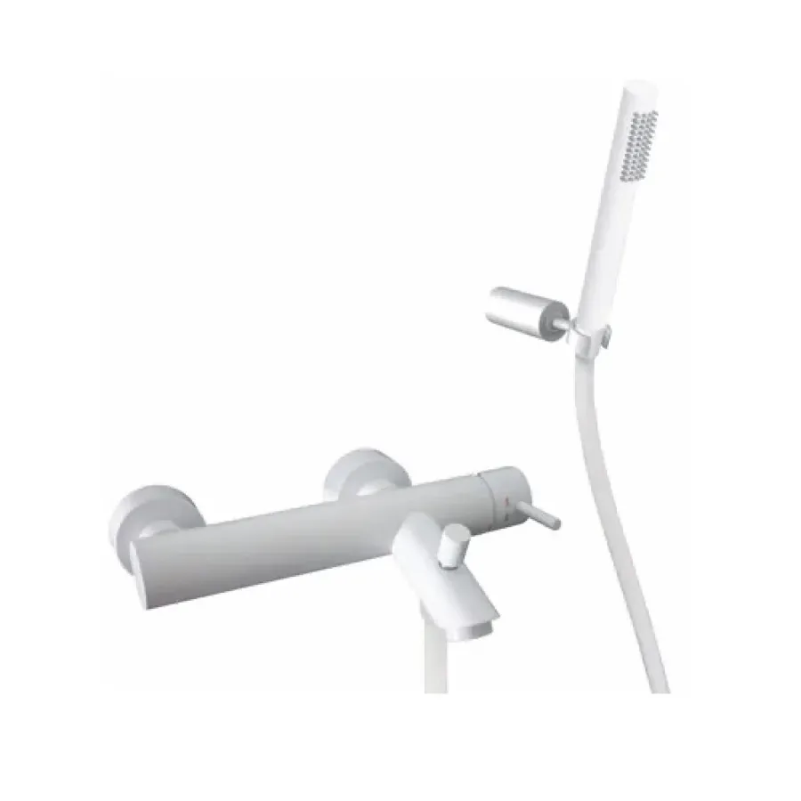 Paffoni Miscelatore Duplex Vasca da bagno serie Light con supporto fisso e doccetta colore bianco opaco LIG023BO