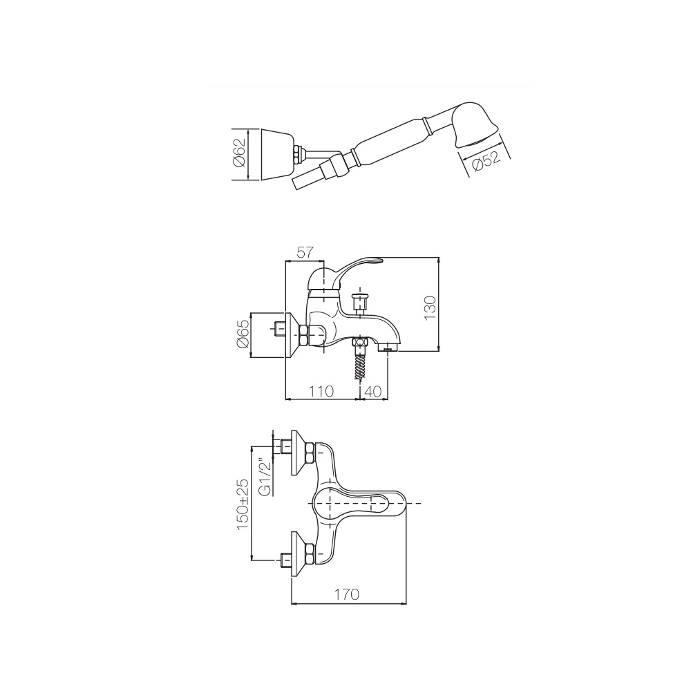 Porta&Bini Miscelatore Duplex Vasca da Bagno serie Duna con supporto fisso e doccetta colore bronzo 70100BR