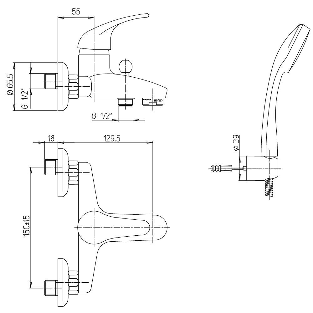 Argo Miscelatore Duplex Vasca da bagno serie Joker con supporto fisso e doccetta mono getto colore cromo JK J510