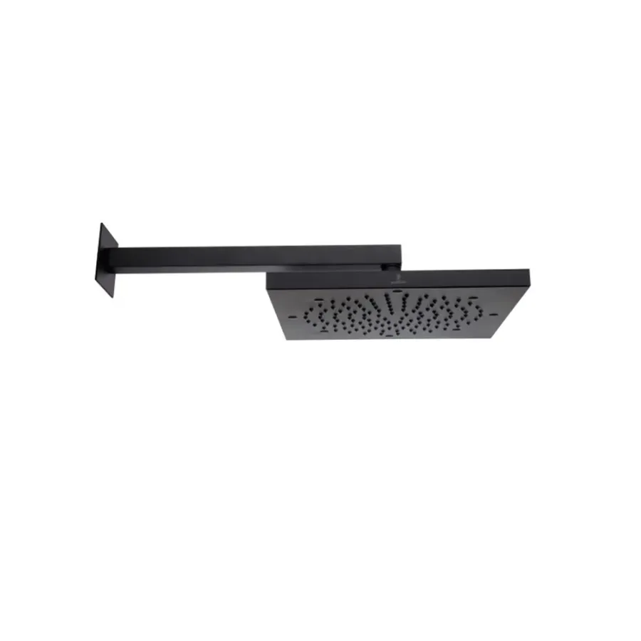 Bossini Soffione quadrato Doccia serie Cube 260x260 mm con braccio quadro a muro colore nero opaco