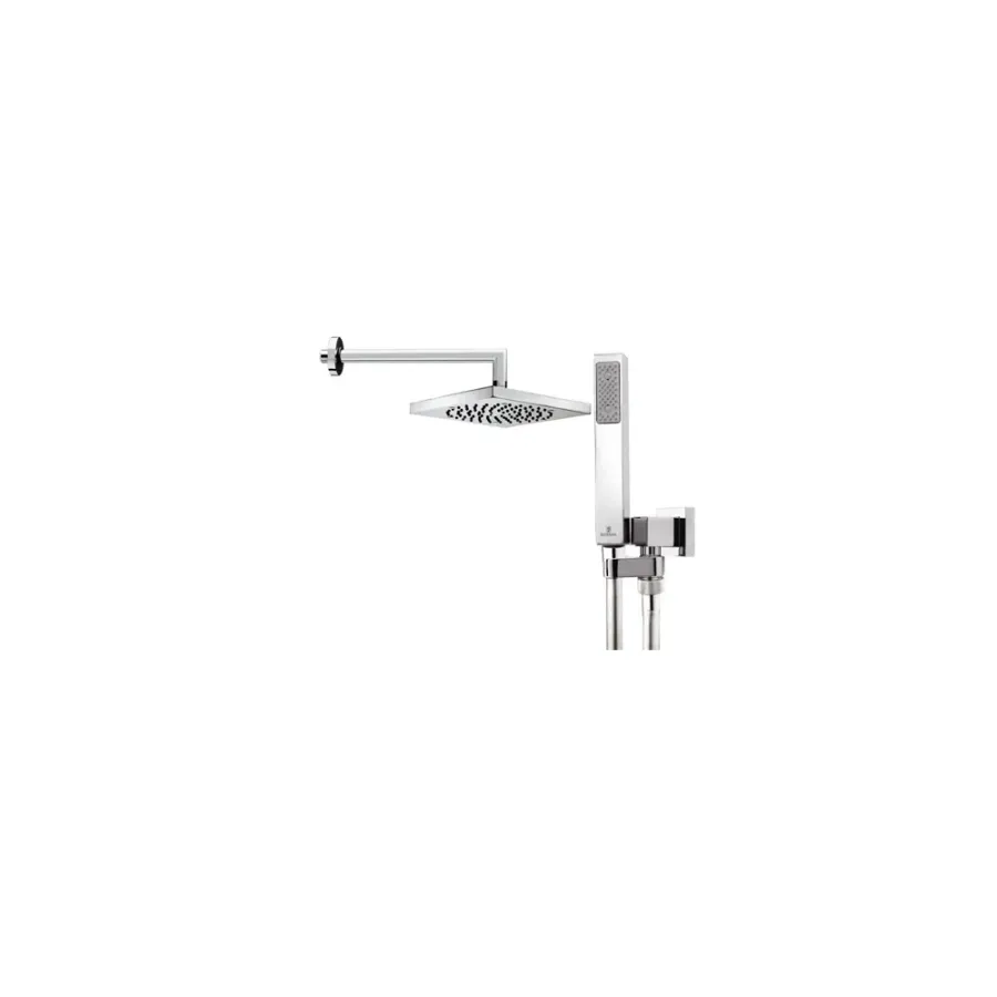 Bossini Kit Duplex Doccia con soffione quadro Cube 21x21 cm con braccio a muro + doccetta Cube e supporto colore cromato