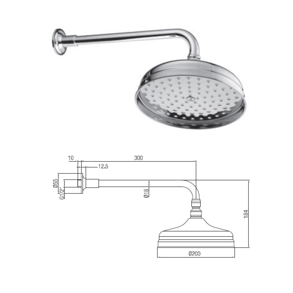 Porta&Bini Soffione rotondo Doccia serie Old Fashion Ø 200 mm ispezionabile con braccio a muro 300 mm colore bronzo 08120BR